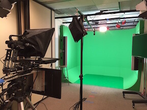 * If you are doing the interview in the studio, do NOT wear green. The process by which the green-coloured background is replaced is by removing anything from the shot that is green-coloured; if you are wearing green, this will also disappear